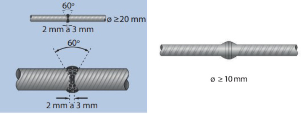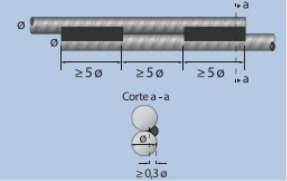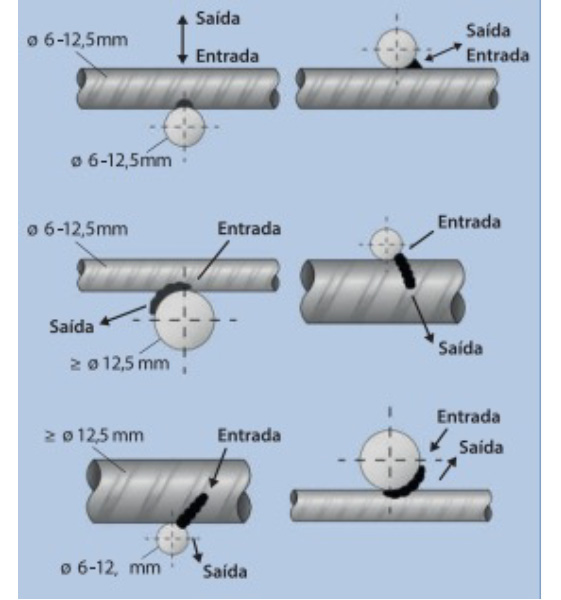 Os tipos de emendas com solda comumente empregados nos vergalhões são: